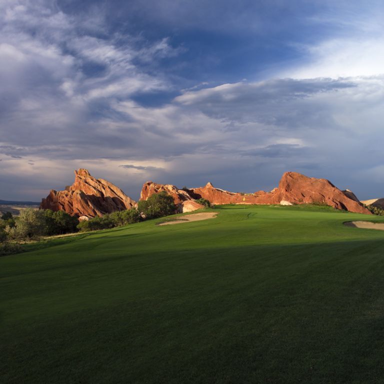 Arrowhead Golf Club's par-70, 6,636-yard championship golf course was crafted by iconic designers Robert Trent Jones, Sr. and Robert Trent Jones, Jr. to blend seamlessly with its breathtaking natural setting in the foothills of the Rocky Mountains. Majestic red sandstone rock formations frame gently rolling hills and manicured emerald greens, with numerous elevation changes, unique bunkering and striking water features creating both strategic diversity and a stunning backdrop for golf.