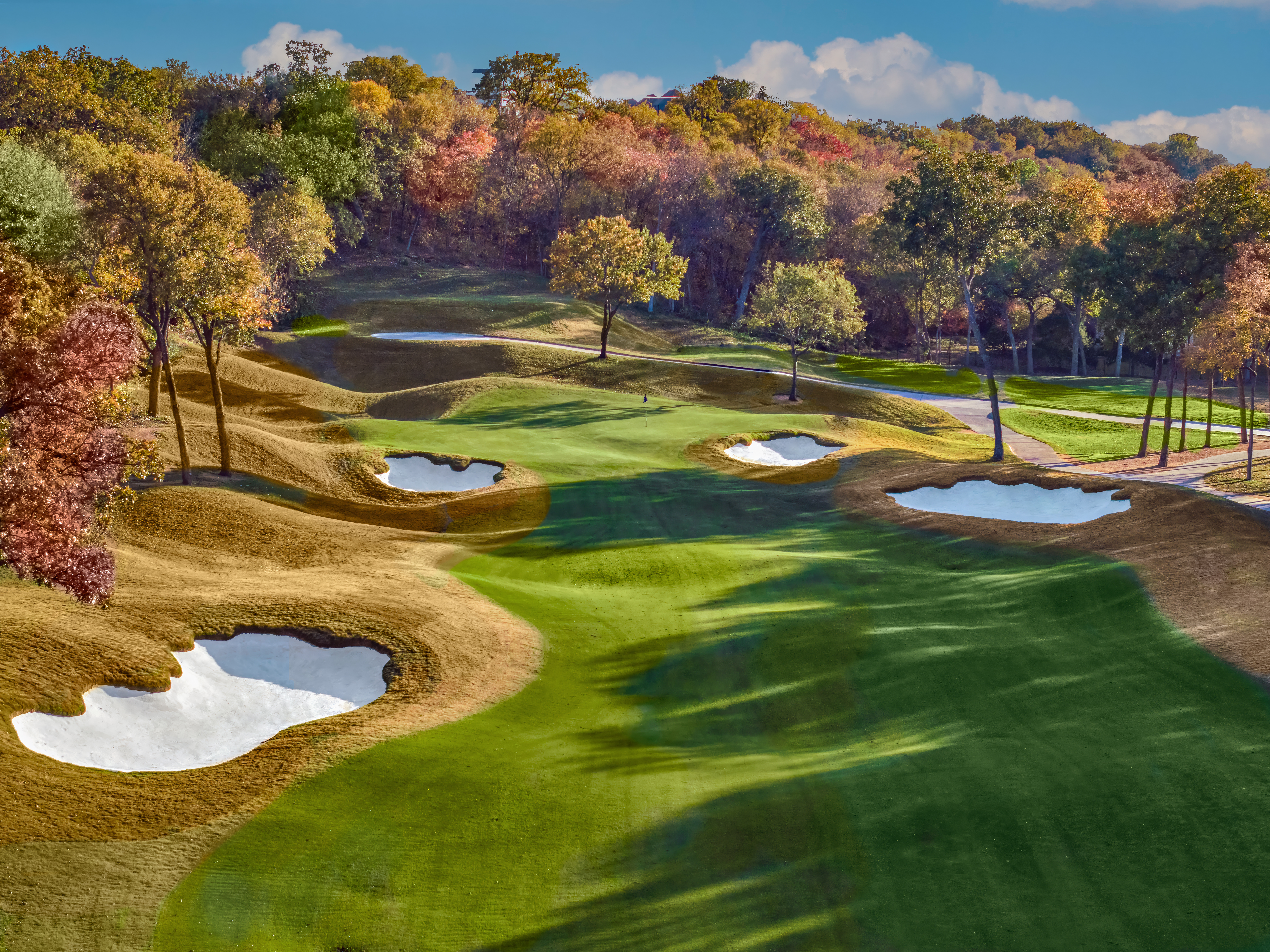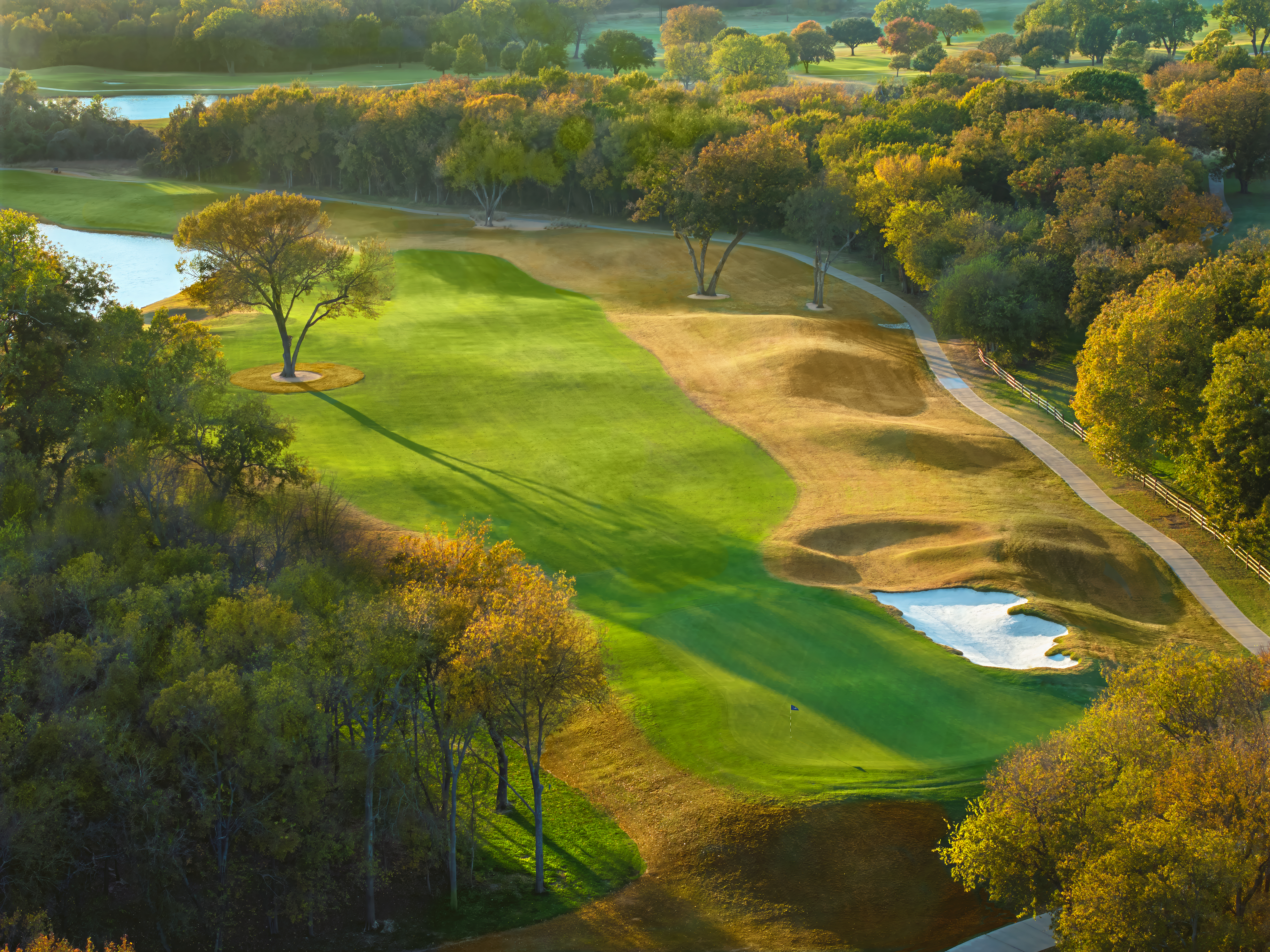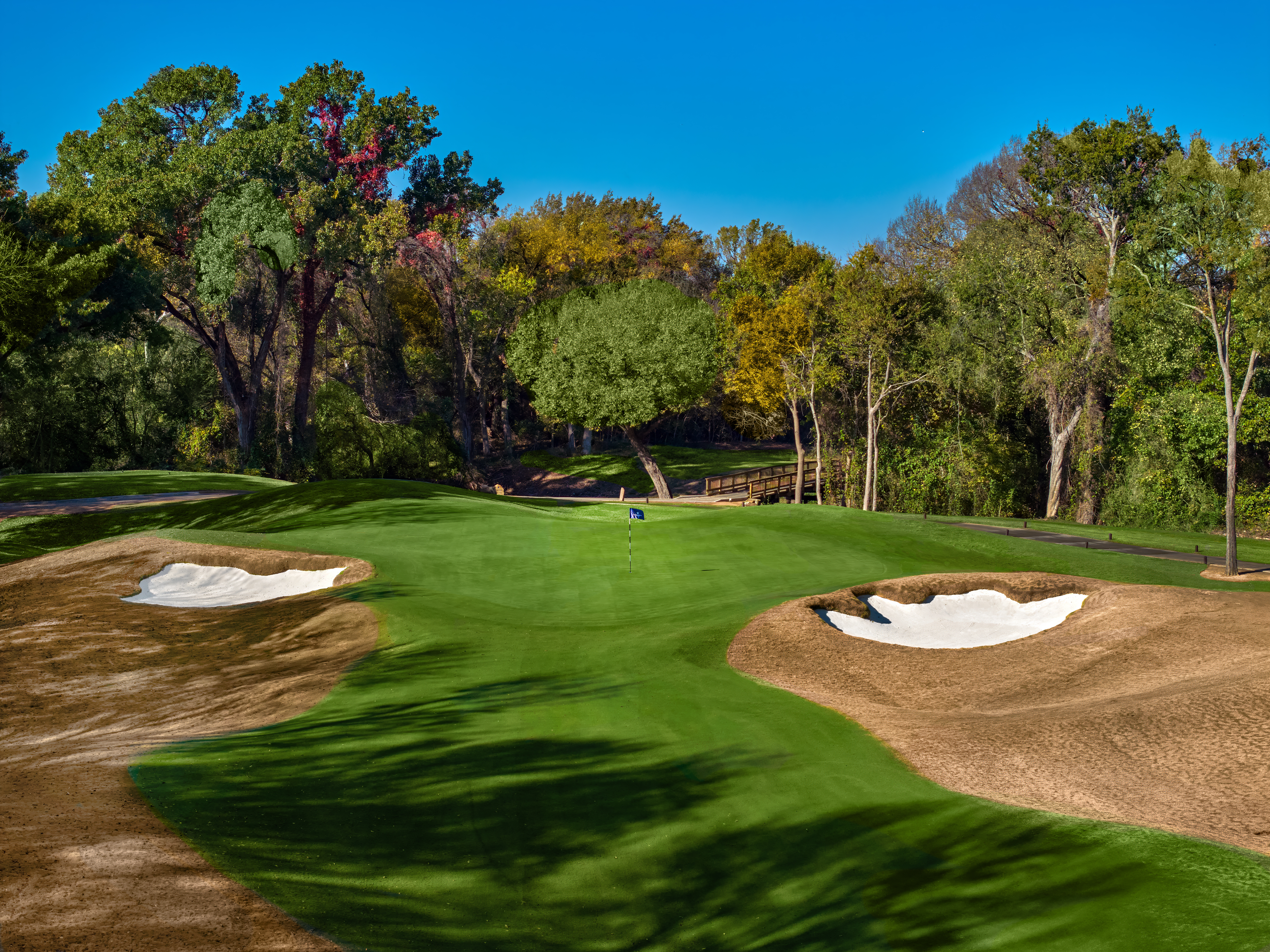 Cowboys Golf Club has undergone a comprehensive course renovation designed to enhance playability, conditioning, and the overall championship experience. All 18 greens were completely rebuilt from the ground up with new drainage, base systems, fresh greens mix, and sod, while being restored to their original—and materially larger—dimensions. In addition, every tee box was reshaped, squared, and resodded; fairways were refined with a new secondary cut along the edges; the majority of cart paths were replaced; and all six bridges across the property were fully renovated.