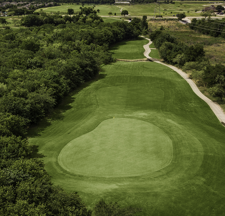 Mansfield National Golf Club's championship course is a par-72, 18-hole layout designed by John Colligan — the mind behind Squaw Valley and Ridgeview Ranch — stretching 6,850 yards across 225 rolling acres in one of DFW's most naturally dramatic settings. Native oaks, cedars, and elm-lined fairways give way to Low Branch Creek, a 4-acre lake, and 26 bunkers that demand both accuracy and creativity on every approach. Large, undulating Tiff Dwarf Bermuda greens keep the challenge honest from tee to green, while the signature par-3 fifth — stretching 233 yards — stands as one of the most demanding short holes in the entire Metroplex and a true testament to Colligan's vision for a course that is as memorable as the land it was built on.
